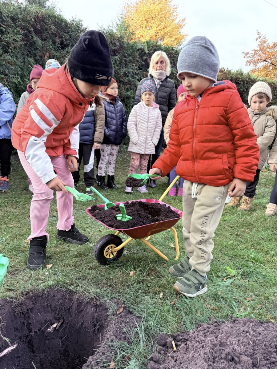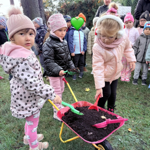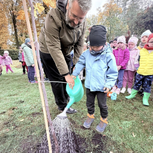 15 października, w ramach obchodów Dnia Drzewa, nasi przedszkolacy, jak co roku, posadzili drzewo. Tym razem jest to tulipanowiec, który uatrakcyjni swoim wyglądem placyk przed budynkiem przedszkola.